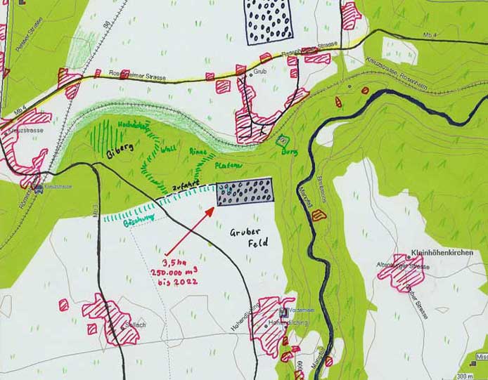 geplante Kiesgrube stellt neben der bereits bestehenden und noch